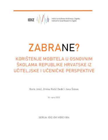 Jokić, Boris and Ristić Dedić, Zrinka and Šimon, Jana (2023) Zabrane? - korištenje mobitela u osnovnim školama Republike Hrvatske iz učiteljske i učeničke perspektive. Project Report. Institut za društvena istraživanja, Zagreb.