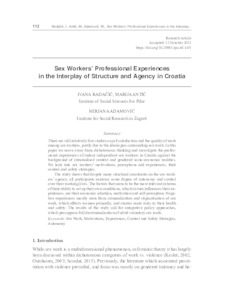 | Additional Information: | Language: English. - Title in Croatian: Profesionalna iskustva seksualnih radnika/ca u interakciji strukture i djelovanja u Hrvatskoj. |