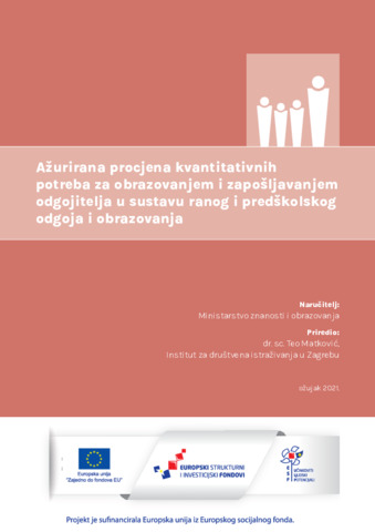 Matković, Teo (2023) Ažurirana procjena kvantitativnih potreba za obrazovanjem i zapošljavanjem odgojitelja u sustavu ranog i predškolskog odgoja i obrazovanja. UNSPECIFIED. Ministarstvo znanosti i obrazovanja, Zagreb.