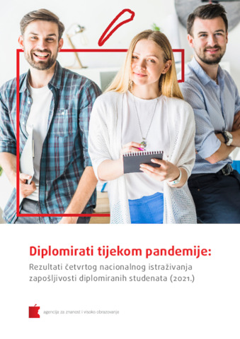Četvrto nacionalno istraživanje zapošljivosti diplomiranih studenata provedeno krajem 2021. godine obuhvatilo je generaciju koja je diplomirala tijekom 2020. godine, odnosno uslijed izbijanja COVID-19 pandemije koja je u svojoj prvoj godini u značajnoj mjeri pogodila kako obrazovni sustav tako i tržište rada u cjelini. Provedba ovog istraživanja Agencije za znanost i visoko obrazovanje kroz ovo je razdoblje rutinizirana, ali se interes, odaziv i konačna obuhvaćenost diplomanada ne smanjuje, tako da je u 2021. godini anketu ispunilo 4858, odnosno 14,6 % studenata koji su diplomirali 2020. godine. Kroz godine se pojedina visoka učilišta uključuju, povlače ili vraćaju u proces prikupljanja suglasnosti. U 2021. godini u istraživanju je sudjelovalo šest učilišta više nego prethodne godine, te je analitički relevantan broj suglasnosti prikupljen sa 79 učilišta na kojima je diplomiralo 60 % svih studenata u RH. Sukladno administrativnim podatcima, iskustvo studijske međunarodne mobilnosti nije se prorijedilo u generaciji koja je diplomirala u godini izbijanja pandemije te je uvelike koncentrirano među diplomandima sveučilišnih i diplomskih studija. Studijsku mobilnost u manjoj su mjeri realizirali diplomandi prirodnih, tehničkih i biotehničkih znanosti, na sveučilištima u Osijeku i Splitu, te oni slabijeg obiteljskog zaleđa. Iskustvo primanja stipendije postalo je učestalije u odnosu na prijašnja istraživanja, te je čak 52 % anketiranih diplomanada iskazalo da je primalo neku vrstu stipendije. Iza tog porasta prvenstveno stoji dostupno EU financiranje od 2017. godine za socioekonomske i STEM stipendije. Općenito, dinamika zapošljavanja generacije koja je diplomirala 2020. godine nešto je povoljnija nego kod generacije koja je diplomirala 2018./2019. Tako je u vrijeme istraživanja krajem 2021. godine bilo zaposleno 83,3 % sudionika koji više ne studiraju, dok je u istraživanju prethodne generacije provedenom krajem 2020. zaposlenih bilo 79,5 %. Diplomandi koji su studij završili u mjesecima lockdowna sreli su se s tržištem rada bez potražnje i gotovo potpunom nemogućnošću zapošljavanja do jeseni 2020., ali srećom bez dugotrajnijih posljedica jer su kroz narednu godinu sustigli ostatak generacije. Analizom je obuhvaćeno i više pokazatelja kvalitete zaposlenosti – rad u struci, vrsta ugovora, visina plaće i zadovoljstvo poslom. Tako su prema vlastitom iskazu u struci radile četiri petine diplomanada, što je gotovo identično rezultatima prijašnjih praćenja zapošljivosti. Analiza je potvrdila manje vjerojatnosti zapošljavanja u struci za polaznike stručnih studija, što ukazuje na izostanak prepoznavanja strukovne specifičnosti tih studijskih programa na tržištu rada. Također, diplomandi humanističkih i biotehničkih znanosti imaju najniže vjerojatnosti zapošljavanja u struci, dok biomedicina, zdravstvo i tehničke znanosti predvode. Diplomirani studenti nižeg socioekonomskog statusa imaju manje šanse za rad u struci, bez obzira na studij koji su pohađali, dok stipendije povećavaju šanse za rad u struci. U vrijeme istraživanja, nešto više od godinu dana nakon diplome, tek je polovina zaposlenih diplomanada imala siguran posao na određeno, što predstavlja poboljšanje u odnosu na istraživanje iz 2017. godine, ali ukazuje na učestalu nesigurnost početka karijere i za visokoobrazovane. Viševarijatna analiza potvrđuje razlike u vjerojatnosti rada na neodređeno s obzirom na područje znanosti, gdje se diplomirani studenti tehničkih znanosti ističu s većom šansom da rade na neodređeno. Vjerojatnost sigurnog zapošljavanja ne razlikuje se s obzirom na vrstu i razinu studijskog programa, ali uzevši u obzir sveučilišta, diplomirani na sveučilištima u Osijeku, Rijeci, Splitu i Zadru imaju manje šanse sigurnog zaposlenja, što izgledno nisu odlike programa na tim studijima, već potražnje lokalnih tržišta rada. Treba istaknuti da je nesigurnost ugovora za diplomande najveća upravo u javnom sektoru (uz izuzetak zdravstva), kao i da su žene u vidno nepovoljnijim položaju u ovom aspektu kvalitete rada. Nadalje, analizirana je učestalost rada na poslu koji je plaćen barem na razini nacionalnog prosjeka (iznad 7000 kn). I u 2021. godini četvrtina diplomanada radila je na poslovima plaćenim manje od 5000 kn, dok je tek nešto više od trećine (35,2 %) imalo plaću iznad 7000 kn. Pri tome su veće plaće bitno zastupljenije među diplomandima diplomskih sveučilišnih studija, Sveučilišta u Zagrebu, te prirodnih, tehničkih i biomedicinskih znanosti, dok takvu plaću zarađuje manje od petine diplomanada biotehničkih, društvenih i humanističkih znanosti. Također, muškarci, diplomandi zaposleni u struci, na neodređeno i u privatnom sektoru, imaju oko 15 postotnih bodova veće šanse raditi na poslovima s većim primanjima. Ukupno je 4,5 % diplomanada u vrijeme anketiranja živjelo u inozemstvu, što je neznatno manji udio nego u istraživanjima 2018. – 2020. (5,3 – 5,7 %). U skladu s nalazima prijašnjih istraživanja, emigracija nakon diplome najčešća je kod diplomanada koji su prethodno imali iskustvo međunarodne studijske mobilnosti a ujedno su joj skloniji i diplomandi lošijeg financijskog stanja i visokoobrazovanih roditelja. Diplomandi prirodnih znanosti imaju veće šanse da isele, bez značajnog utjecaja vrste i razine studijskog programa te tipa sveučilišta/visokog učilišta. Poslovi koje diplomirani studenti rade u inozemstvu prvenstveno se razlikuju po visini plaće, dok se prema drugim kriterijima kvaliteta zaposlenja ne razlikuje značajno od zaposlenja diplomiranih u Hrvatskoj.