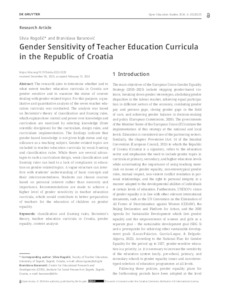 | Additional Information: | Language: English. - Title in Croatian: Rodna osjetljivost programa učiteljskih studija u Republici Hrvatskoj. - Article number: 0220225. |