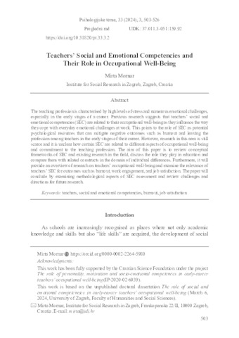 | Additional Information: | Language: English. - Title in Croatian: Učiteljske socio-emocionalne kompetencije i njihova uloga u profesionalnoj dobrobiti. |