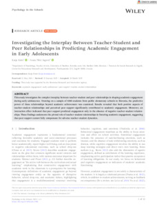 Košir, Katja and Pikić Jugović, Ivana (2025) Investigating the interplay between teacher-student and peer relationships in predicting academic engagement in early adolescents. Psychology in the schools, 62 (8). pp. 2608-2619. ISSN 0033-3085 (Print), 1520-6807 (Online)