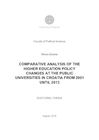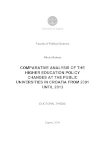 Baketa, Nikola (2016) Comparative analysis of the higher education policy changes at the public universities in Croatia from 2001 until 2013. PhD thesis, Sveučilište u Zagrebu, Fakultet političkih znanosti.