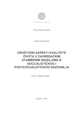 Klasić, Anamaria (2025) Društveni aspekti kvalitete života u zagrebačkim stambenim naseljima iz socijalističkog i postsocijalističkog razdoblja. PhD thesis, Sveučilište u Zagrebu, Filozofski fakultet.