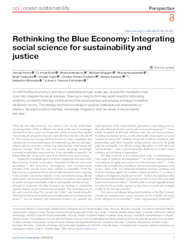Penca, Jerneja and Ertör, Irmak and Ballesteros, Marta and Briguglio, Michael and Kowalewski, Maciej and Pauksztat, Birgit and Cepić, Dražen and Piñeiro-Corbeira, Cristina and Vaidianu, Natasa and Villasante, Sebastian and Pascual-Fernández, José J. (2025) Rethinking the Blue Economy: integrating social science for sustainability and justice. npj Ocean sustainability, 4. pp. 1-6. ISSN 2731-426X