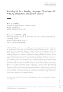 | Additional Information: | Language: English. - Title in Croatian: Prelaženje granica, očuvanje jezika: etnolingvistička vitalnost hrvatske dijaspore u Švedskoj. |