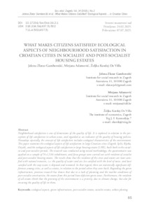 | Additional Information: | Language: English. - Title in Croatian: Čime su građani zadovoljni?: ekološki aspekti zadovoljstva susjedstva u hrvatskim gradovima u socijalističkim i postsocijalističkim naseljima. |