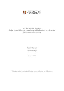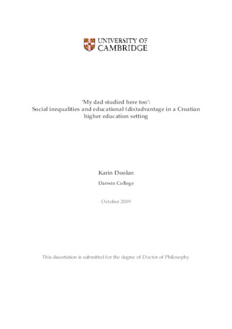 Doolan, Karin (2009) ‘My dad studied here too’: social inequalities and educational (dis)advantage in a Croatian higher education setting. PhD thesis, University of Cambridge, Faculty of Education.