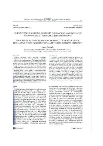 | Additional Information: | Language: Croatian. - Title in English: Teacher inservice and preservice training for development of information and technology literacy. |