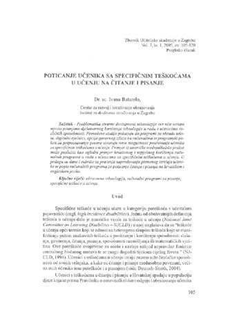 | Additional Information: | Language: Croatian. - Title in English: Encouraging reading and writing in pupils with specific learning difficulties. |