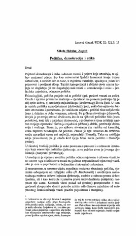 | Additional Information: | Language: Croatian. – Title in English: Politics, democracy and ethics. |