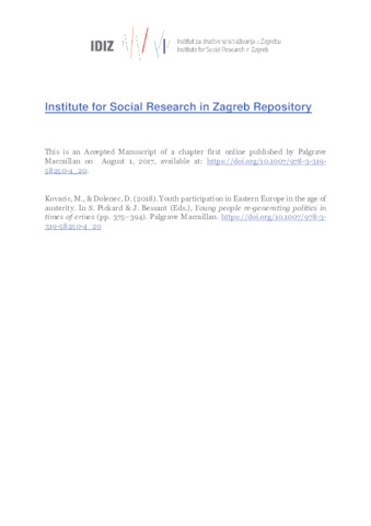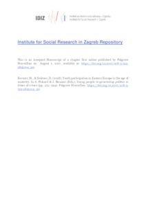 Kovacic, Marko and Dolenec, Danijela (2018) Youth participation in Eastern Europe in the age of austerity. In: Young people re-generating politics in times of crisis. Palgrave Studies in Young People and Politics (1). Palgrave MacMillan, Cham, pp. 375-394. ISBN 978-3-319-58249-8 (Print), 978-3-319-58250-4 (eBook)